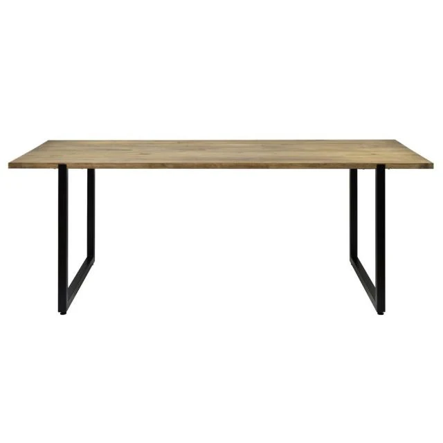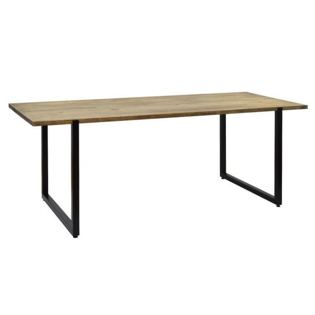 Table salle à manger Uley en style Vintage Industriel. Pied Noir. 80X200x76cm. Parfaite pour créer une ambiance industrielle le bois est fini avec un effect vintage. Le style de mobilier industriel vintage prend ses caractéristiques des vieilles usines ou espaces industriels, auxquels des solides pièces en bois massif sont combinées avec des éléments metalliques qui font l’union et au même temps leur confèrent une extraordinaire résistance à l’usage. Plateau en bois massif de pin de 30mm. fini avec des huiles naturels, avec haute résistance à l’usage et certification écologique. Touchée très agréable à bois naturel. Très solide avec pieds métal coupé à laser. Finition avec peinture en poudre sechée au four à l’haute température.