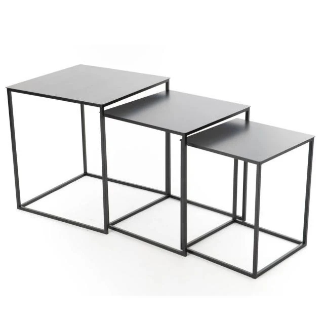 Ces 3 tables carrées en métal gris neutre et aux lignes épurées sauront imposer leur style tendance et la touche de sobriété et délégance pour facilement trouver leur place dans votre boutique.