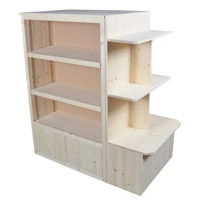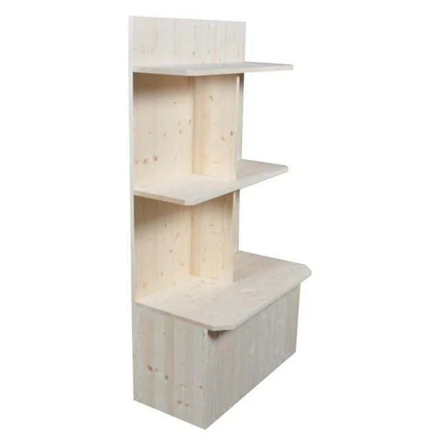 Valorisez vos produits avec notre gamme ”bois clair”, pour donner une touche naturelle à votre aménagement. Bois Pin naturel origine France. Vernis incolore classe A+. Fabrication Française par un ESAT. Fabrication en circuit court pour un respect de l’environnement (Bois, conception, fabrication, stockage: Rhône 69).
